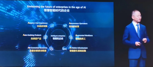在這次大會上,華為分享了對智能化的觀察、思考、戰(zhàn)略和實踐,并從多個方面解讀了全面智能化(All Intelligence)戰(zhàn)略。華為副董事長、輪值董事長徐直軍在主題演講中提到,人工智能已成為對行業(yè)影響最大的技術(shù),未來的智能化企業(yè)將具備六個A的特征:Adaptive User Experience(自適應(yīng)體驗)、Auto-evolving Products(自演進(jìn)產(chǎn)品)、Autonomous Operation(自治的運營)、Augmented Workforce(增強的員工)、All-Connected Resources(全量全要素全聯(lián)接)、以及AI-Native Infrastructure(智能原生基礎(chǔ)設(shè)施)。